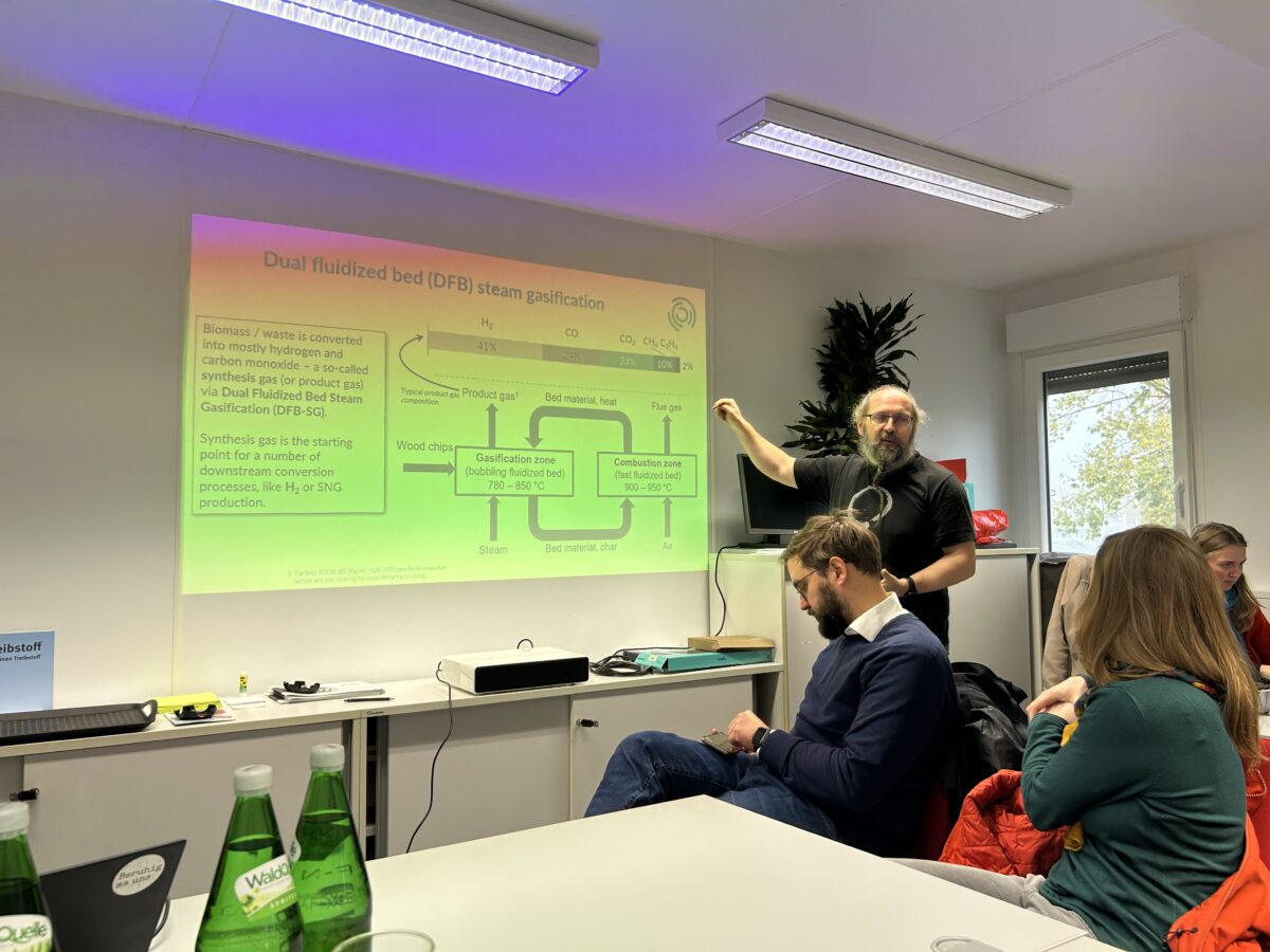 Die Teilnehmenden der Exkursion erhielten einen detaillierten Einblick in die laufenden Forschungsarbeiten von der Gasifizierung über die Gasreinigung bis hin zu Technologien für die Weiterverarbeitung zu flüssigen Kraftstoffen oder chemischen Vorprodukten.